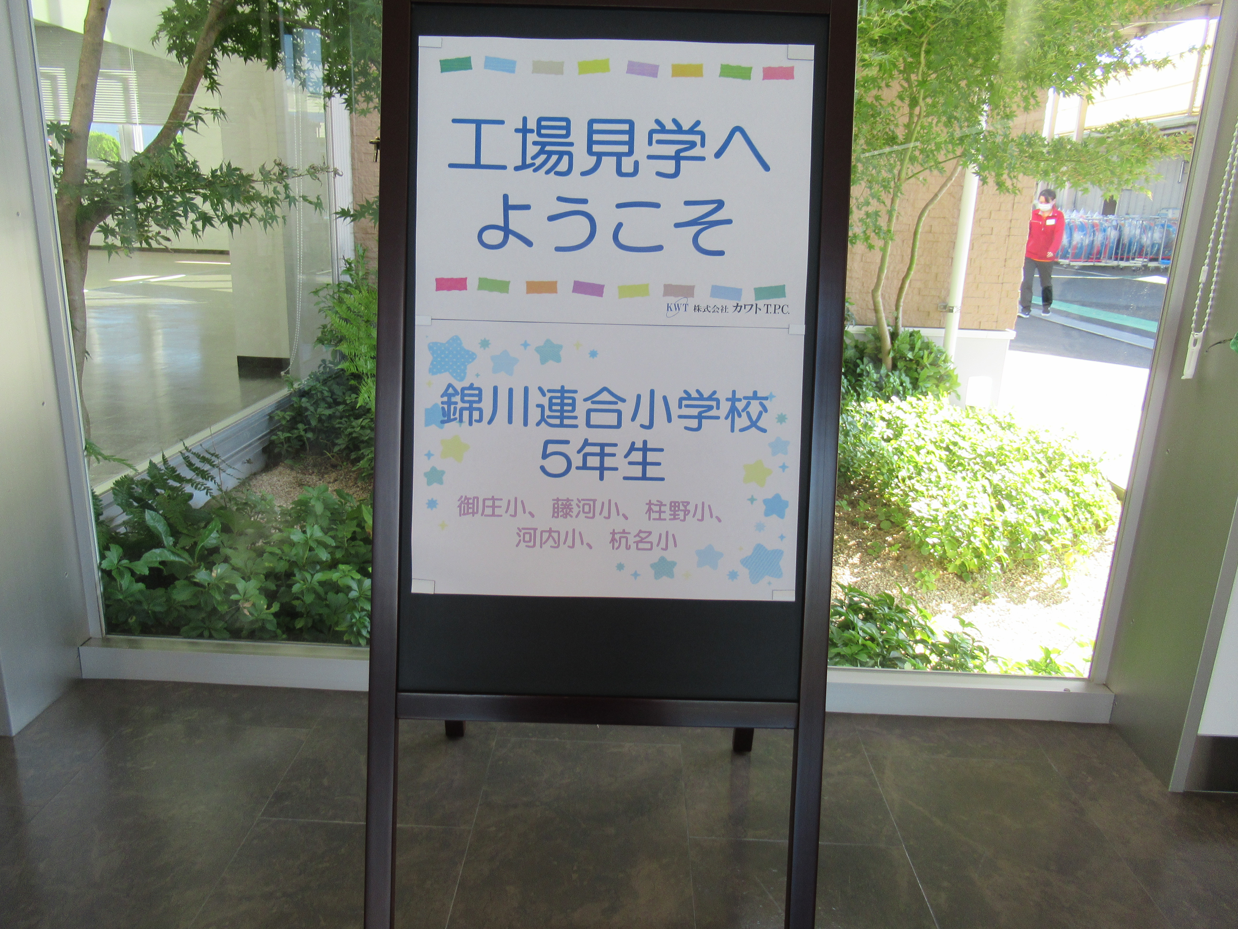 錦川連合小学校(御庄小、藤河小、柱野小、河内小、杭名小)の5年生40名が社会科学習の一環として、工場見学にやってきました。みんな一生懸命話を聞きながらメモを取っている姿を見て感心しました。